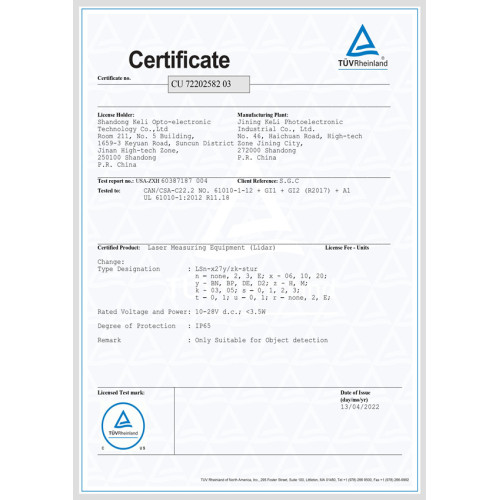 LS — Сертификат UL 61010 для Северной Америки