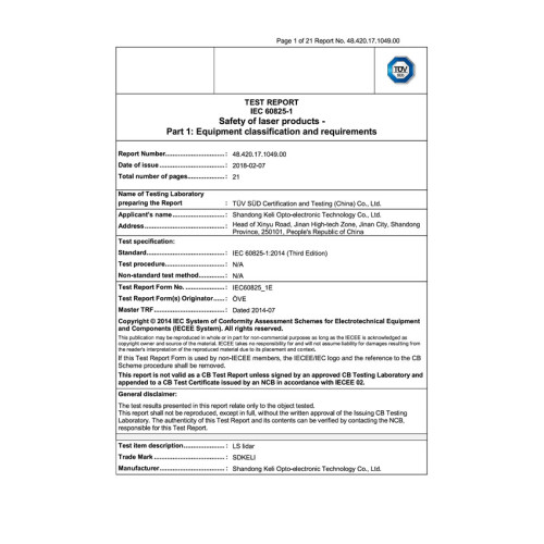 LS — Отчет о лазерной безопасности класса I