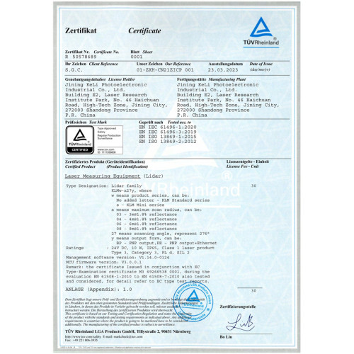 KLM - Сертификат знака TUV